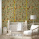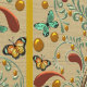 Inspiré à la fois de l'Art Nouveau et de William Morris, ce gracieux design tourbillonnant de jungle mythique remplie d'orangers et de papillons dressé contre un motif jaune chaleureux imitant la soie brute est à la fois fantaisiste et classique et convient à la combinaison avec presque tous les décors.
