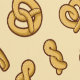 Pretzels et autres snacks salés cuits au four. Motif sans couture. Couleur arrière - plan personnalisée.