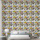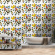 Baguette amovible Peel Boutons Bleu Jaune Orange Bleu Papier peint Motif géométrique. Super projet do-it-yourself facile pour les locataires propriétaires. Créez un look personnalisé pour votre maison condo appartement dortoir ou affaires. Décorez le mobilier aux murs. Disponible en vinyle texturé et lisse. Tailles 2'x4' 2'x8' 2x10' 2'x12'' et 2'x1'' swatch.