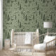Papier Peint Pine Deer Lake Life - motif de bois vert sauge.
