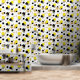 Ce fond d'écran amusant présente des pois en jaune, or, noir et rayures. L'accent parfait ajouté à votre décor maison.