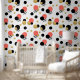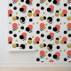 Ce fond d'écran amusant présente des pois en orange, or, noir et rayures. L'accent parfait ajouté à votre décor maison.