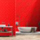 Cet élégant papier peint est orné d'un élégant motif à pois de polka. Les pois blancs sont carrelés sur un arrière - plan rouge vif. La couleur vive ajoute du cachet à toutes les chambres.