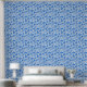 Papier Peint Preppy Palm Beach Bleu et Fleurs blanches