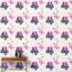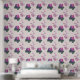 Papier Peint Rose vert pourpre Doodé fleurit Papillons Accent
