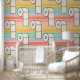Faîtes plaisir à vos murs de toilette avec ce papier peint avec des rouleaux de papier toilette noir et beige rétro accrochés sur de larges bandes horizontales dans des couleurs arc-en-ciel muettes avec des coeurs en rangs.