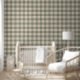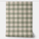 Papier Peint Rustic Linen Buffalo Check Beige and Green Plaid