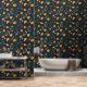Accentuez vos murs avec ce papier peint à motifs d'agrumes riche. Il présente des oranges vibrantes et des fleurs d'oranges avec des feuillages feuillus qui dansent sur un arrière - plan bleu marine foncé.