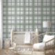 Ce papier peint présente un motif plaid vert, gris et blanc sauge.