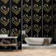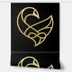 Image features a stylized and abstract design on a black background. It is composed of smooth, flowing lines in a gold color, forming a shape that resembles a heart, intertwined with an infinity symbol. The lines are bold and have a uniform thickness, creating a sense of elegance and continuity. The overall design is minimalistic and modern, with a focus on the fluidity and interconnectedness of the shapes.