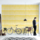 Le papier peint géométrique en jaune gras donne un côté chic et moderne à tout nouvel appartement.