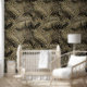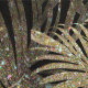 Turn the glam up a notch with this unique tropical print of overlapping palms leaves dans une seamless pattern that adds a little sparkle and depth of shadows to the lush foliage. This version is glittering shades of beige gold on a dark, chocolate brown background. Search ID831 to see other color options and additional products with this design.