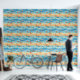 Motif en bleu et orange, poisson-étoiles de plage, océan, vague et eau à thème de la vie marine.