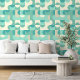 Papier Peint Taupe Beige Turquoise Blue Mint Cercles verts Moti
