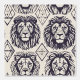 Ce luxueux papier peint présente un ensemble de têtes de lions de style croquis en graphite foncé et des formes géométriques.