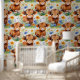 Les animaux de ferme d'aquarelle vaches hautes terres dans un champ de fleurs.