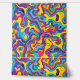 Cette oeuvre présente une composition dynamique et énergique de lignes tourbillonnantes et ondulées dans un kaléidoscope de couleurs. Le design présente des formes audacieuses, qui se chevauchent dans des teintes électriques de jaune, bleu, rose, violet et orange, créant un mouvement dynamique et fluide dans toute la pièce. Les formes ondulantes et la palette de couleurs intense évoquent un sens de la psychédélique, rappelant l'art des années 1960 et 1970. L'interaction de courbes et de contrastes rend l'oeuvre d'art visuellement stimulante et pleine de vie.