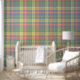 Mon oeuvre originale est présentée sur ce fond d'écran amusant, composé d'un motif plaid en vert, rose et jaune dominant les rayures de base. Celle-ci mesure 2 pieds x 8 pieds, mais vous pouvez choisir d'autres options de taille. Ce papier peel et papier peint est en vinyle texturé ou vous pouvez choisir le vinyle lisse aussi bien.