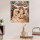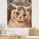 Cette belle affiche pour amoureux de les chats et admirateurs de l'art du chat vintage présente l'oeuvre du célèbre artiste de chat anglais Louis Wain. L'illustration montre un chat tabby brun très surprenant, les yeux bleu clair, contre un arrière - plan de papier peint décoratif.