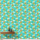Ajoutez une touche sauvage à vos murs avec ce papier peint à motifs d'ouest sauvage. Il a un style campy rétro avec des cowgirls et des chevaux aux couleurs vives, cactus, fer à cheval, nuages et lassos sur fond bleu vif.