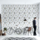 Le design est composé de West Highland Terriers blancs avec divers accessoires en bleu et noir tels que chapeaux, lunettes, cravates, écharpes et os sur un arrière - plan bleu clair. Montre ton amour pour Westies !