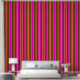 Wallpaper with vertical stripes. Light orange, dark pink and golden brown colors in stripes that vary in width.