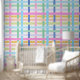 Bring instant cheer to your space with this wobbly paint stroke style neon pastel plaid wallpaper for interiors. The soft rainbow stripes and woven look create are ideal for brightening living rooms, nurseries, or creative studios. A colourful, bold, and maximalist statement piece that adds imagination, joy, and optimism to any wall. Great for fun and colourful birthday photo walls, too!