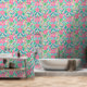 Un motif preppy sans soudure avec des zigzags vert minty et rose, ainsi que des fleurs roses avec des feuilles verts, sur un arrière - plan vert minty. Le design allie des éléments géométriques audacieux à de charmantes fleurs pour créer un effet frais et élégant.