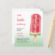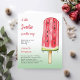 Un arrière - plan dégradé vert et blanc. Décoré d'un grand bâton pop melon. Personnalisez et ajoutez le nom de la mère à être et les détails de la fête. Texte : Un petit Sweetie est en route. 1 feuille = 1 invite imprimé bord à bord.