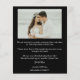 Annoncez votre mariage à vos amis et à votre famille par cette carte moderne. Le design a 3 collage photo à l'avant avec la calligraphie blanche "Just Married" texte et les noms des nouveaux mariés. Sur le dos, vous avez une photo en haut et détails du mariage paragraphe de texte ci-dessous. Personnalisez la carte avec vos photos, les détails du mariage, la date du mariage et les noms.