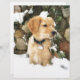 joli récupérateur jaune or jouant dans la neige contre mur de pierre de terrain avec lierre