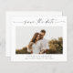 Une photo de script élégante enregistrer la date avec une photo horizontale et un texte minimal. Cliquez sur le bouton Personnaliser pour customiser cette conception.