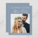 Un mariage privé bleu poussiéreux et économique ou une faire-part d'élévation et une invitation à la réception qui comprend votre photo, "Happily Ever After Party" dans un mélange de typographie blanche simple et un script blanc moderne chic et vos prénoms et votre date de mariage. Au contraire, personnalisez votre faire-part et votre invitation et ajoutez vos noms dans un script de type signature.