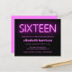 Une invitation pour son 16e anniversaire, avec "seize" en néon rose vif et chaud, à la cool, pour une arrière - plan qui souhaite un petit budget.