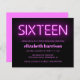 Papier Pink Neon Lights 16e anniversaire de fête Invitati