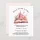 Personnalisable rose princess anniversaire invitation papier abordable, avec un palais de princesse rose magique avec des fleurs et un livre de conte de fées.