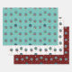Un ensemble de trois feuilles plates papier d'emballage de Noël avec le mignon motif des rennes Père Noël. © ArianeC Illustrations-Tous droits réservés