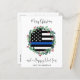 Envoyez Joyeux voeux de Noël à vos amis et votre famille avec cette carte de Noël unique en ligne Bleue Bleue Bleue Mince - Couronne de Noël dans un drapeau américain aux couleurs du drapeau de la police, design moderne noir bleu et blanc avec sainte et baies. Personnalisez avec le nom de famille. Cette carte de Noël de la police est parfaite pour les familles de policiers ou les cartes de Noël du service de police. Ces cartes postales budgétaires de noël doivent être postées comme des cartes postales surdimensionnées, de sorte qu'elles peuvent encourir des frais d'affranchissement standard, mais elles n'ont pas besoin d'une enveloppe ou d'une étiquette d'adresse de retour. DROIT D'AUTEUR © 2020 Judy Burrows, Black Dog Art - Tous droits réservés. Police Noël Mince Ligne Bleue Budget Vacances