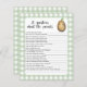 "Une petite pomme de terre est en route". Célébrez avec cette fête de baby shower à thème de la pomme de terre de dessin animé ! Aquarelle patate mignonne avec le visage bébé. Cage verte.