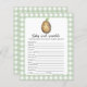 "Une petite pomme de terre est en route". Célébrez avec cette fête de baby shower à thème de la pomme de terre de dessin animé ! Aquarelle patate mignonne avec le visage bébé. Cage verte. Réponses : CRAVINGS, PLEIN, PACIFICATEUR, BOUTEILLE, LUMIÈRE NOCTURNE, LULLABY, STROLLER, ÉPIDURAL, BRÛLE, CHAISE HAUTE, SAC DE DIAPER, ÉPONSE