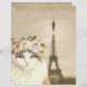 Vintage teinte sépia photo arrière - plan de la Tour Eiffel avec superposition d'un beau chat fantaisie à couronne florale