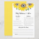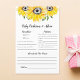 Éclairez votre baby shower avec notre charmant Sunflower Baby Predictions and Advice Game! Ce jeu magnifiquement conçu présente des tournesols aquarelles et une verdure douce, créant une esthétique chaleureuse et joyeuse qui complète parfaitement une célébration sur le thème du tournesol. Les clients se feront un plaisir de partager leurs prédictions pour l'arrivée du bébé - devinant des détails comme la date de naissance du bébé, le poids et la couleur des cheveux - et d'offrir des conseils sincères aux futurs parents. C’est un délicieux souvenir que les parents qui s’attendent à chérir pour les années à venir aimeront.