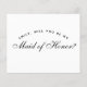 Une simple et minimaliste domestique d'honneur proposition : juste du texte noir sur un arrière - plan blanc. Les mots Maid of Honor sur le devant et le message sur le dos sont écrits dans un élégant script calligraphique, le texte voûté "[Nom] sera-tu mon" en petits casquettes.