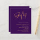 Une invitation design et moderne pour une fête du 50e anniversaire. Un arrière - plan de couleur violette et le mot Fifty écrit avec d'élégantes grandes lettres de script en faux or. Personnalisez et ajoutez un nom et des détails du parti. 1 feuille = 1 invite imprimé bord à bord.