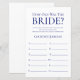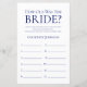 Cette feuille de jeu simple, minimaliste et moderne sur fond bleu marine "How Old Was The Bride?" est parfaite pour n'importe quelle fête prénuptiale. Ce jeu amusant et facile est sûr de faire rire abondamment lors de n'importe quelle fête ! Demandez à la famille et aux amis de vous envoyer des photos de la mariée à différents âges et faites-les imprimer. Numérotez-les et placez-les près de ces feuilles de jeu. Donnez simplement une feuille à chaque invité (n'oubliez pas les stylos) et laissez la compétition commencer ! Vous serez étonné de voir combien de personnes connaissent vraiment l'âge de la mariée. En quelques secondes, vous pouvez voir à quoi ressemblera votre feuille de jeu. Sélectionnez simplement "Personnaliser ce modèle" et tapez le nom de la mariée.