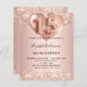 Pour un élégant Quinceañera, 15ème anniversaire. Un arrière - plan rose en or. Décoré d'or rose, de faux éclats roses et de ballons. Personnalisez et ajoutez un nom, ainsi que les détails du parti. Le nom est écrit avec un script de style écrit à la main, numéro 15 avec des polices de style ballon.