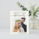 Élégant et économique, le moderne design crème légère elopement / mariage privé faire-part et réception enregistrer la date qui contient votre photo et "Save The Date For Our Happily Ever After Party" dans un mélange de typographie simple et un script chic avec des swashes. Sous votre photo, ajoutez vos noms, la date et l'emplacement de réception ; à l'arrière, personnalisez votre faire-part mariage, entrez l'adresse de votre site Web mariage pour créer un code QR permettant à vos invités de rechercher plus d'informations et d'ajouter vos noms dans un script signature.
