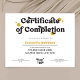 Certificat d'achèvement tendance en noir et jaune avec polices de style rétro et espace pour votre logo d'entreprise. Parfait pour créer des récompenses professionnelles de finition pour les cils, les ongles, les cheveux et d'autres cours de traitement de beauté. Vous pouvez utiliser ce certificat pour n'importe quel type d'accréditation, il suffit de modifier le texte pour répondre à vos besoins.