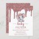 ROSE BUDGET Parties scintillant d'or Drips Jote Elephant Baby Girl Baby shower Invitation avec des gouttes de fausse parties scintillant et arrière - plan rose métallique brillant. **Notre papier BUDGET est plus petit et plus délicat, mais toujours beau!** Pour une comparaison des types de papier, veuillez regarder notre vidéo ici : https://youtu.be/G0F9Am5HPD4 Si vous avez besoin d'aide ou de correspondances, veuillez nous contacter à cedarandstring@gmail.com.