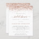 Rose Parties scintillant or invitation à la douche nuptiale de l'or. Un prix économique PETIT 4,5 po x 5,6 po alternatif. Disponible dans un STOCK SEMI-GLOSS 110 lb CARD qui est l'option par défaut (plus épais pour les invitations), OU un STOCK SATIN FINISH 80 lb THINNER PAPER (idéal pour les boîtiers). Les enveloppes sont en option et légèrement plus grandes que la taille de la carte. Style glam pour votre brunch et bulle avec une bordure de parties scintillant en or rose sur chaque côté, et Fête des mariées dans un script de style manuscrit. Personnalisez facilement le texte à vos propres détails. Vous pouvez également modifier le texte et les couleurs arrière - plans via l'option customiser plus si vous le souhaitez.